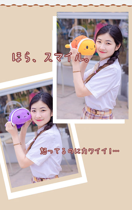 Slinx Peluche Angry Face Drôle Tortue Vert 15cm Japon Réversible Cadeau